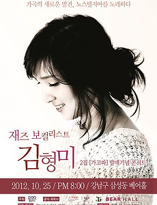 김형미, ‘재즈와 가곡의 만남’ 가을밤을 수놓다 재즈보컬리스트 김형미의 2집 발매 기념 단독 콘서트가 성황리에 열렸다. 지난 25일 오후 8시 서울 삼성동 베어홀에서 열린 이번 콘서트는 가곡과 재즈의 절묘한 조합으로 일반인들이 다소 생소하게 생각하는 재즈와 가곡의 깊이를 전달했다. 김형미는 미국 유학 생활을 통해 얻은 풍부한 음악과 한국인이 가지고 있는 정서를 연주와 노래에 담아 관객들에게 옛 추억을 떠올리게 만들었다. 세월이 지나도 아름다운 노래가 사람들 마음속에 영원히 기억되는 것처럼 음악을 들으며 과거의 아름답고 소중했던 추억을 떠올리고 지친 마음을 위로 해줄 수 있는 노래들을 들려주려는 기획의도를 잘 살려냈다. 공연 시작은 '가을밤'연주로 시작해 이번 앨범에 메인 타이틀곡인 '가고파'를 들려 주었다. '가고파' 뿐만 아니라 이번 공연에 불린 노.. 2012. 10. 27.