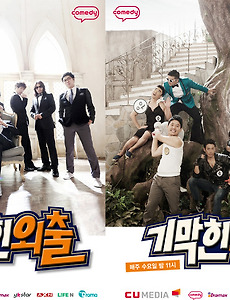 코미디TV '기막힌외출' 반전매력 포스터 공개 공개된 포스터는 2가지 버전으로 포스터 속의 멤버들은 각각 정반대의 모습을 선보여 눈길을 끌었다. 첫 번째 포스터는 멤버 모두 말끔한 정장을 차려 입고 한껏 멋을 낸 듯한 모습. 일명 ‘신사의 품격’ 콘셉트로 촬영을 진행, 고급스러운 모습을 연출했다. 탁재훈은 “우리 이거 보그 화보에 실리는 거야. 잘 찍어.” 라고 우스개 소리를 하기도 했다. 한편 홍인규는 아무래도 이 같은 촬영이 어색한지 사진작가에게 몇 번이나 지적을 받기도. 사진작가가 “홍인규씨, 표정 좀 멋있게. 그런 표정 하시면 안돼요.”라고 재차 부탁하자 홍인규는 “나 이런 거 진짜 못하겠어.” 라고 울상을 지었다. 또 다른 하나는 멤버들의 개그감을 한껏 살린 듯한 포스터로 각양각색의 캐릭터를 패러디 한 모습으로 이루어졌다. 특히 조세호는 싸.. 2013. 7. 17.